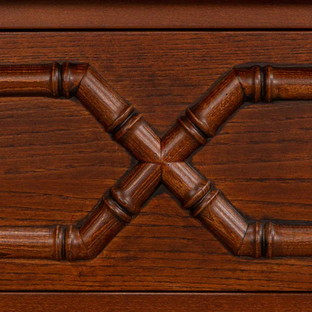 Sublimez votre intérieur avec notre commode en bambou à trois tiroirs et plateau en porcelaine noire, alliant charme intemporel et fonctionnalité. Sa chaleureuse finition brun Monestero met en valeur les élégants détails en bambou et la quincaillerie en laiton d'inspiration vintage. Coiffée d'un plateau sophistiqué en porcelaine noire aux angles légèrement arrondis, cette commode apporte une touche de raffinement et une praticité au quotidien à tous les intérieurs.