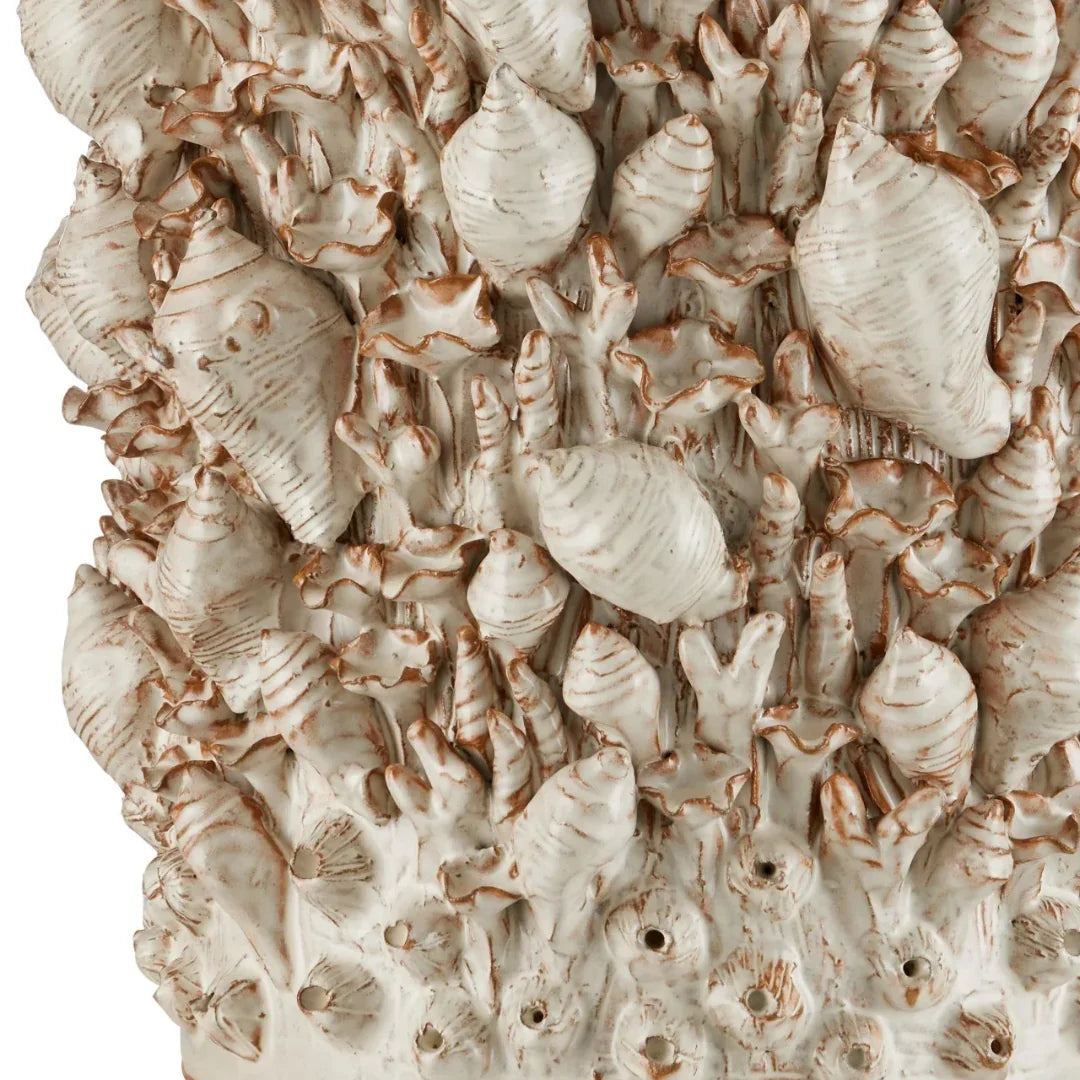 Confectionnée avec un souci du détail exceptionnel, cette lampe de table Ivory Coastal Shell présente des couches complexes de coquillages, de corail et de balanes, réalisées en céramique foncée. L'émail blanc laiteux, appliqué de façon irrégulière, crée une texture évoquant les trésors polis par la mer. Fabriquée artisanalement, cette lampe apporte une touche côtière raffinée et une élégante ambiance inspirée de la plage à votre décoration.