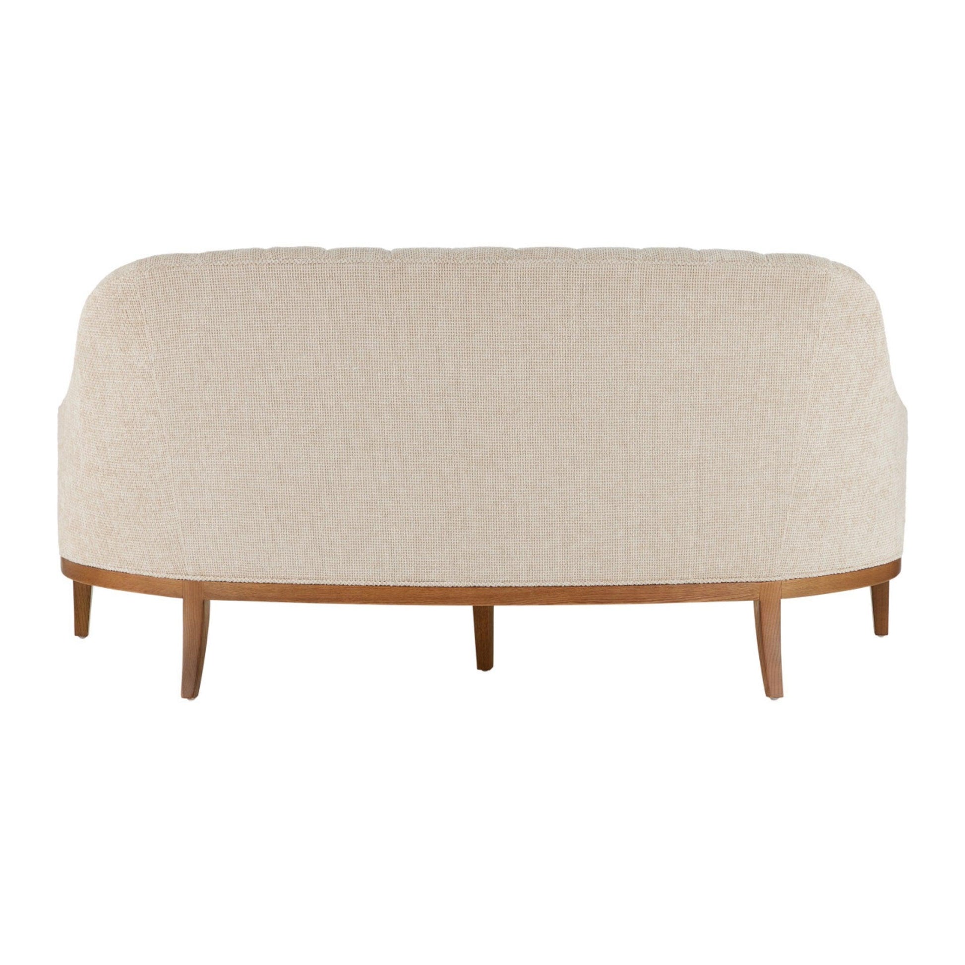 Le canapé Nona Modern Elegant allie confort et style grâce à sa structure en chêne blanc massif, finition bois brun morille, et son revêtement en tissu Chroma Nona couleur avoine d'une douceur incomparable. Son dossier légèrement incurvé est orné d'un capitonnage vertical discret pour une touche raffinée. Pesant 33,5 kg, ce meuble intemporel apporte une élégance sobre à tout intérieur.