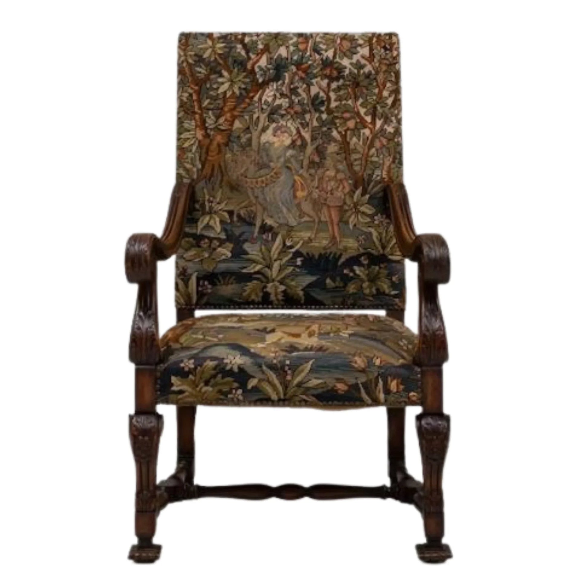 Fauteuil en tapisserie ancienne de style jardin secret, vers 1900