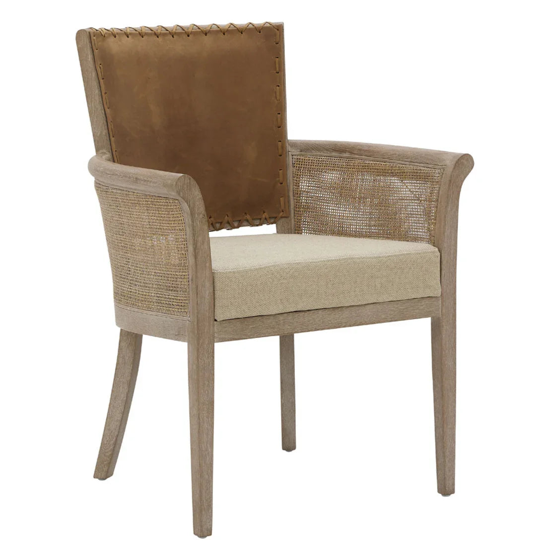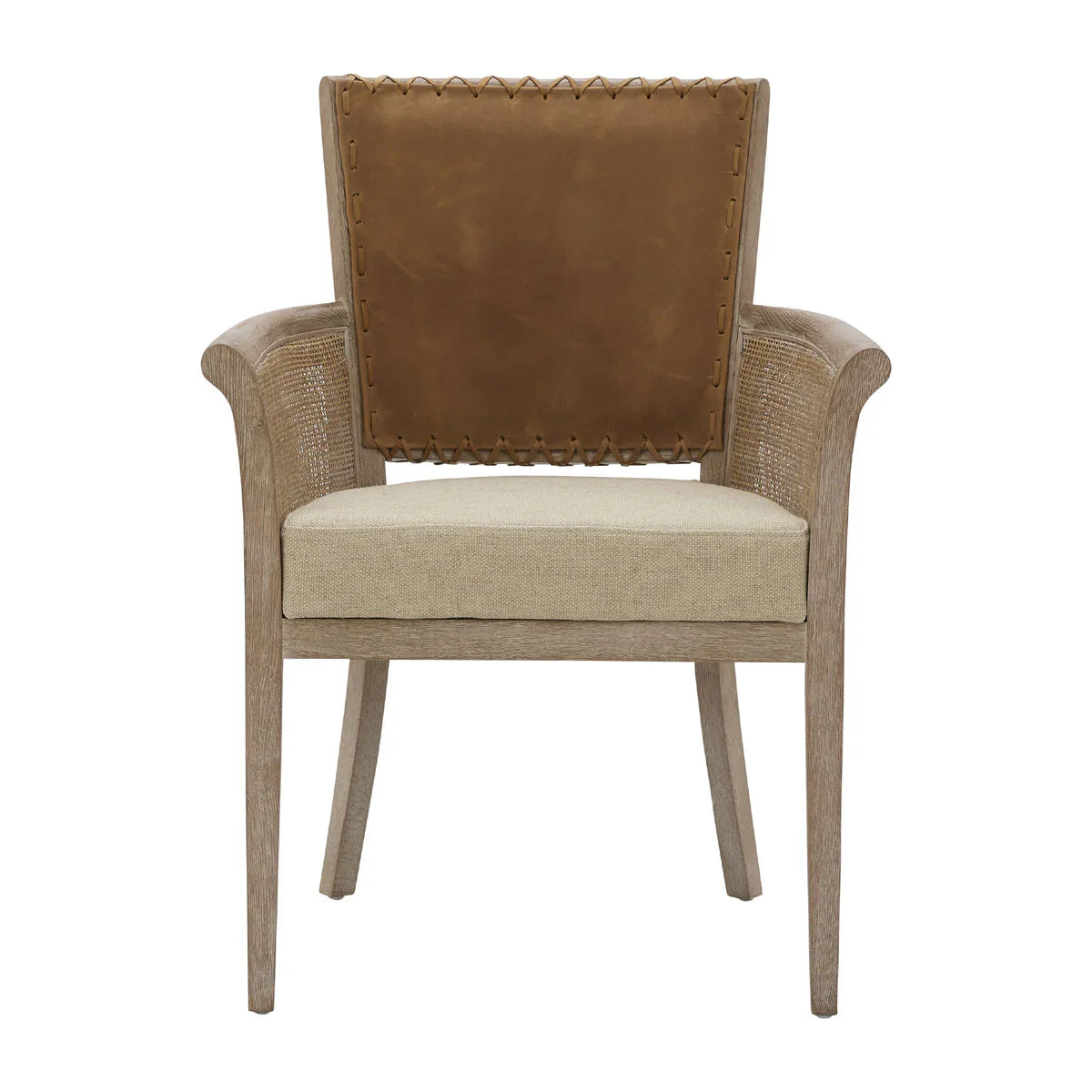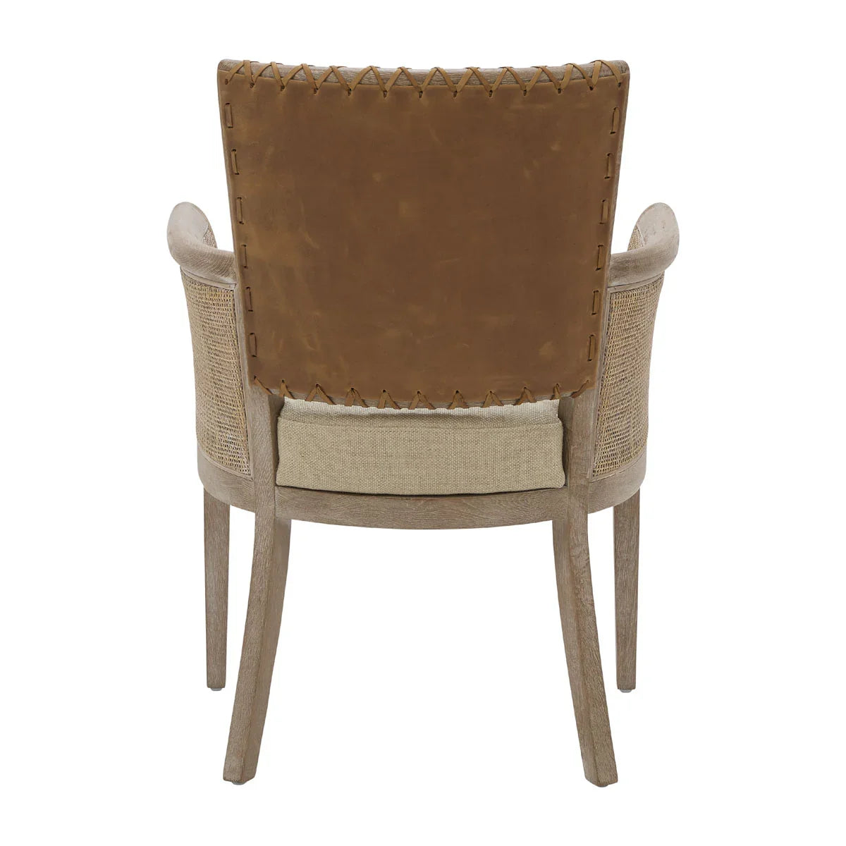 Avec sa structure en chêne vieilli, son dossier en cuir et son assise en lin performant, ce fauteuil en rotin à dossier en cuir cousu offre un équilibre parfait entre style classique et confort au quotidien. Les dossiers en cuir chaleureux sont cousus sur une structure en bois vieilli, tandis que les accoudoirs sont en rotin tressé, l'assise en lin et les pieds arrière incurvés.